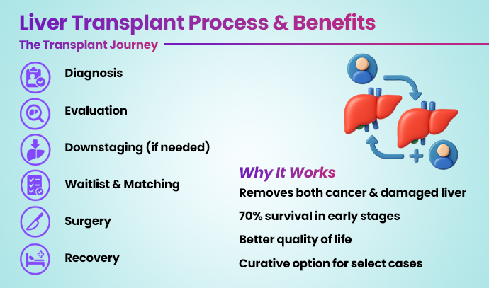 Ans. In early-stage cases, particularly HCC within transplant criteria, a liver transplant can be curative and significantly improve long-term survival rates.